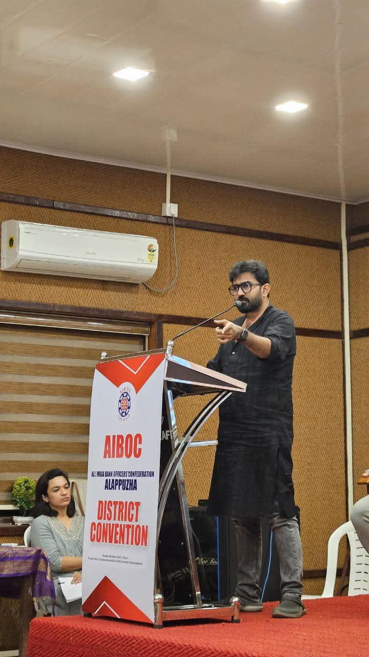 Demonstrating both competence and leadership, he progressed through key managerial roles and currently serves as Senior Manager at the bank’s Regional Office in Thiruvananthapuram. His trade union journey commenced in 2011 and swiftly gained momentum. In 2013, he was appointed Regional Secretary for the Kottayam Region of the Union Bank Officers Association Kerala (UBOAK), and by 2015, he had risen to become General Secretary of UBOAK. His leadership during the COVID-19 pandemic, following his election as General Secretary of the Kerala State Unit of the All India Bank Officers Confederation (AIBOC) in 2020, was particularly impactful. His timely interventions helped secure favorable guidelines and protections for banking professionals during one of the most challenging periods in recent history.