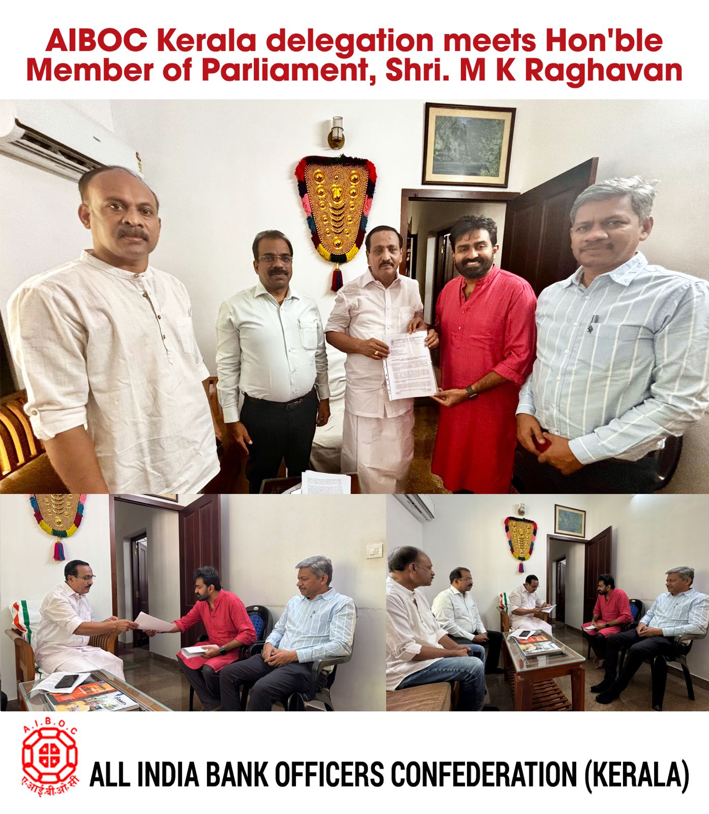 Had the privilege of meeting the Hon’ble Member of Parliament, Shri M.K. Raghavan, and discussing key issues of national significance on behalf of AIBOC Kerala.