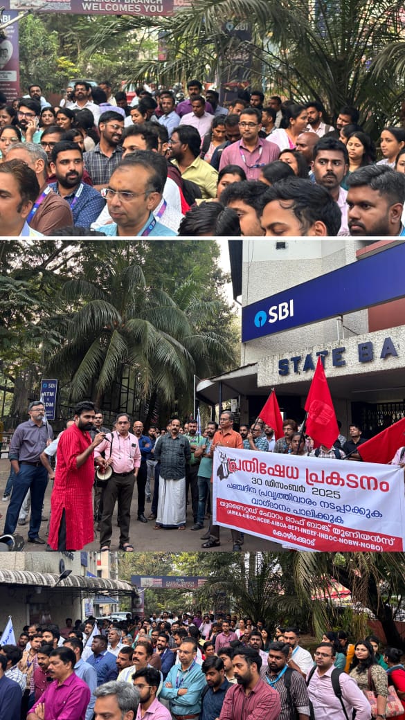 Across Kerala, similar dharna programmes were organised at major town centres, where thousands of bankers, under the banner of UFBU, took to the streets, demonstrating their unity, resolve, and collective strength.