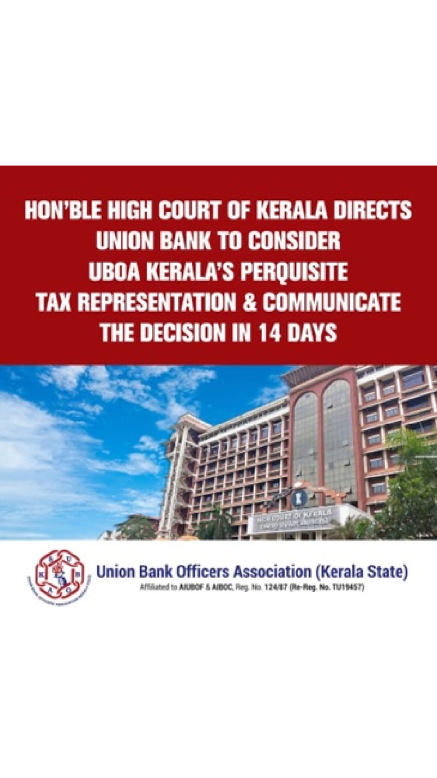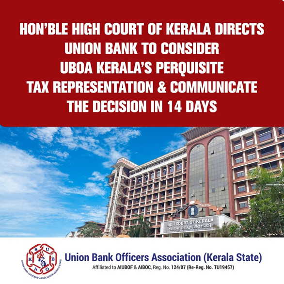 In a key development, the Kerala High Court directed Union Bank of India to review the representation submitted by UBOA Kerala State concerning the perquisite tax on concessional loans. UBOA Kerala raised important concerns regarding: